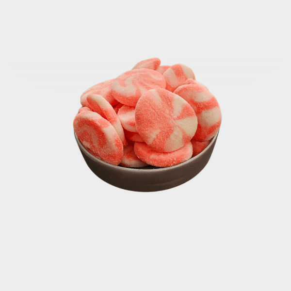 Composition : Sucre, sirop de glucose, gélatine, acidifiant E330, E296, E270, Huile de palme, colorant
